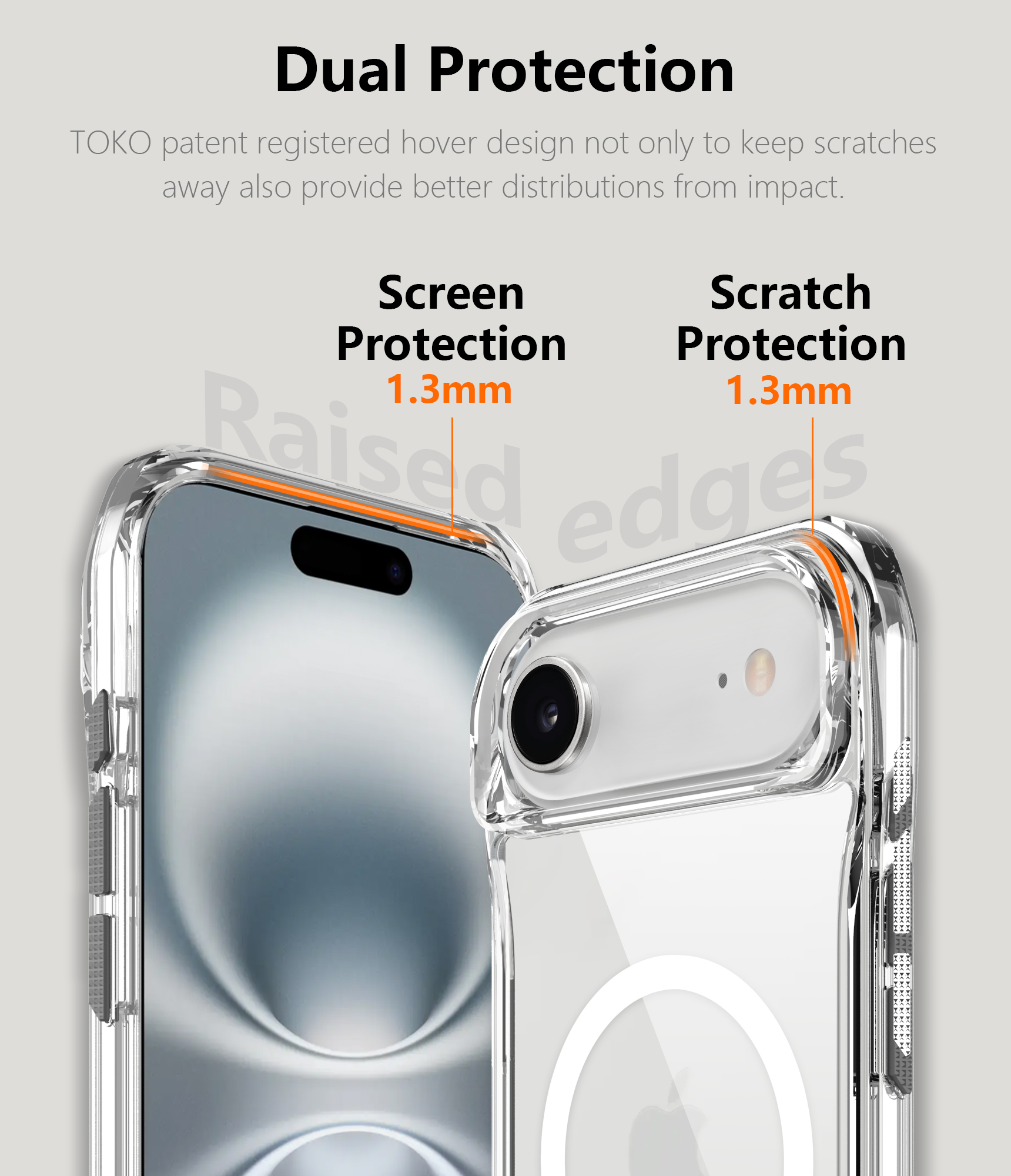 TOKO patent registered hover design not only to keep scratches away also provide better distributions from impact.