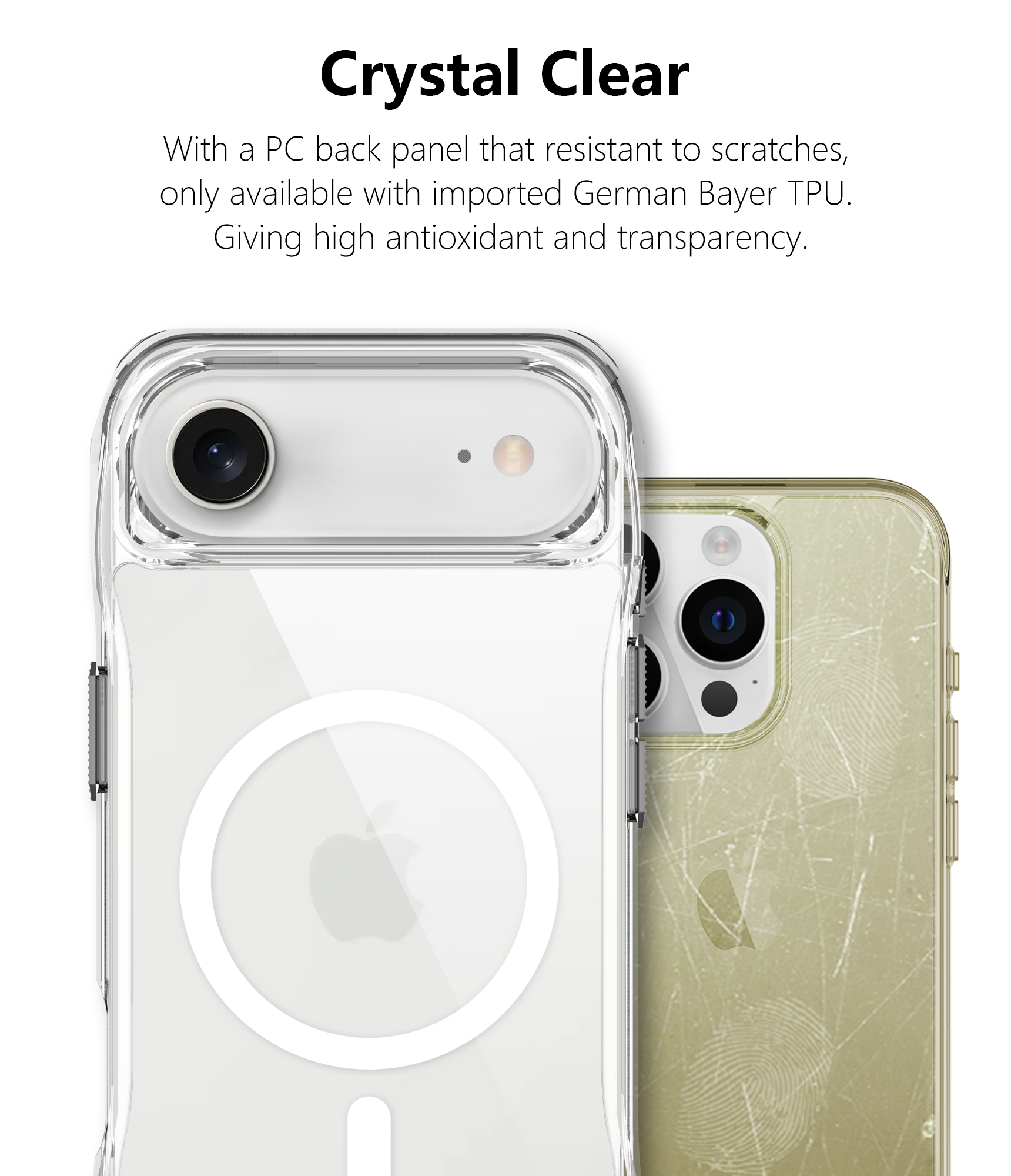 With a PC back panel that resistant to scratches, only available with imported German Bayer TPU. Giving high antioxidant and transparency.