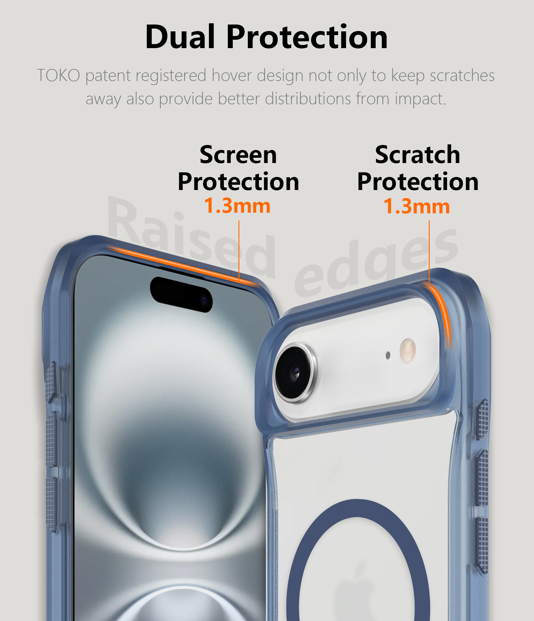 TOKO patent registered hover design not only to keep scratches away also provide better distributions from impact.