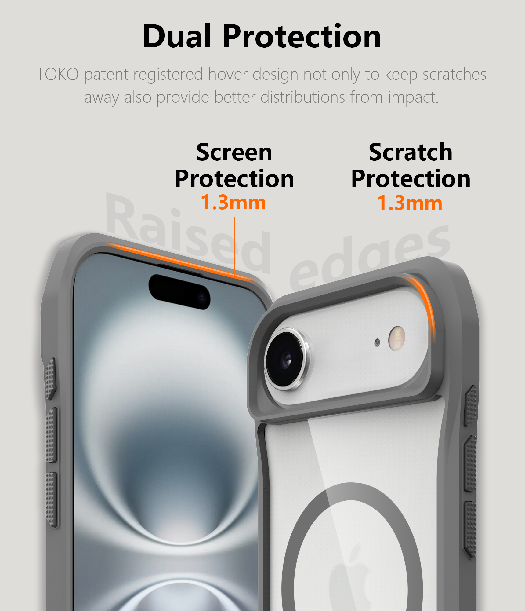 TOKO patent registered hover design not only to keep scratches away also provide better distributions from impact.