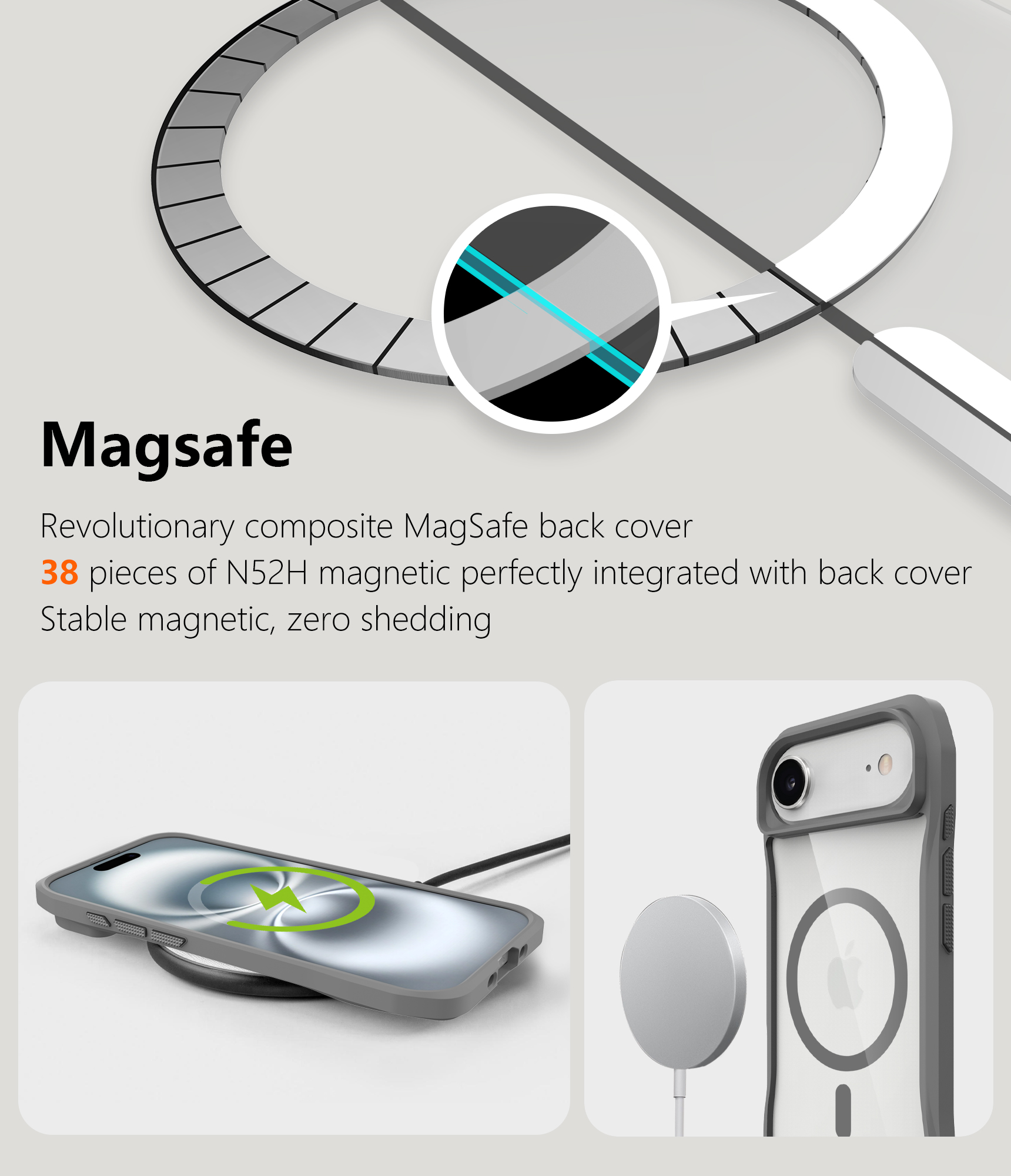 Revolutionary composite MagSafe back cover 38 pieces of N52H magnetic perfectly integrated with back cover.Stable magnetic, zero shedding