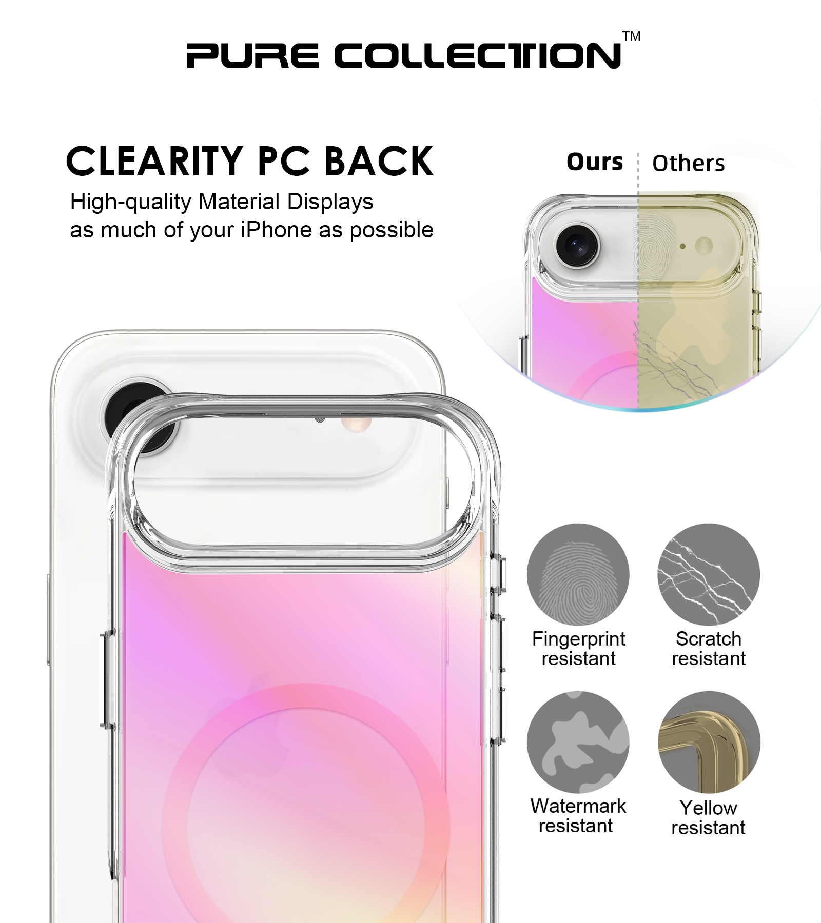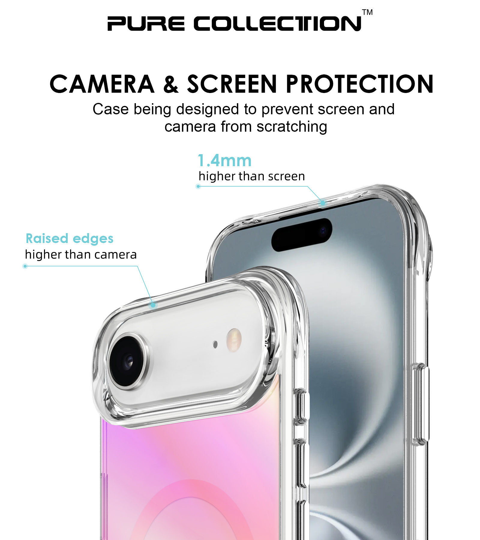 The top and bottom edges of the TPU frame are raised 0.5mm above the PC (polycarbonate) back so it won’t be scratched when the phone is placed face up.