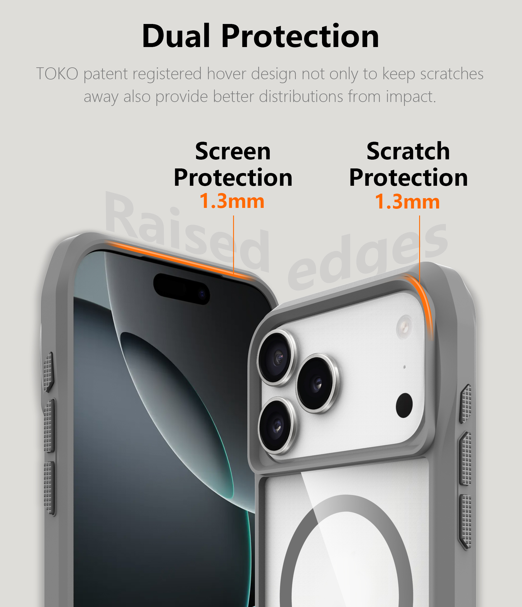 TOKO patent registered hover design not only to keep scratches away also provide better distributions from impact.