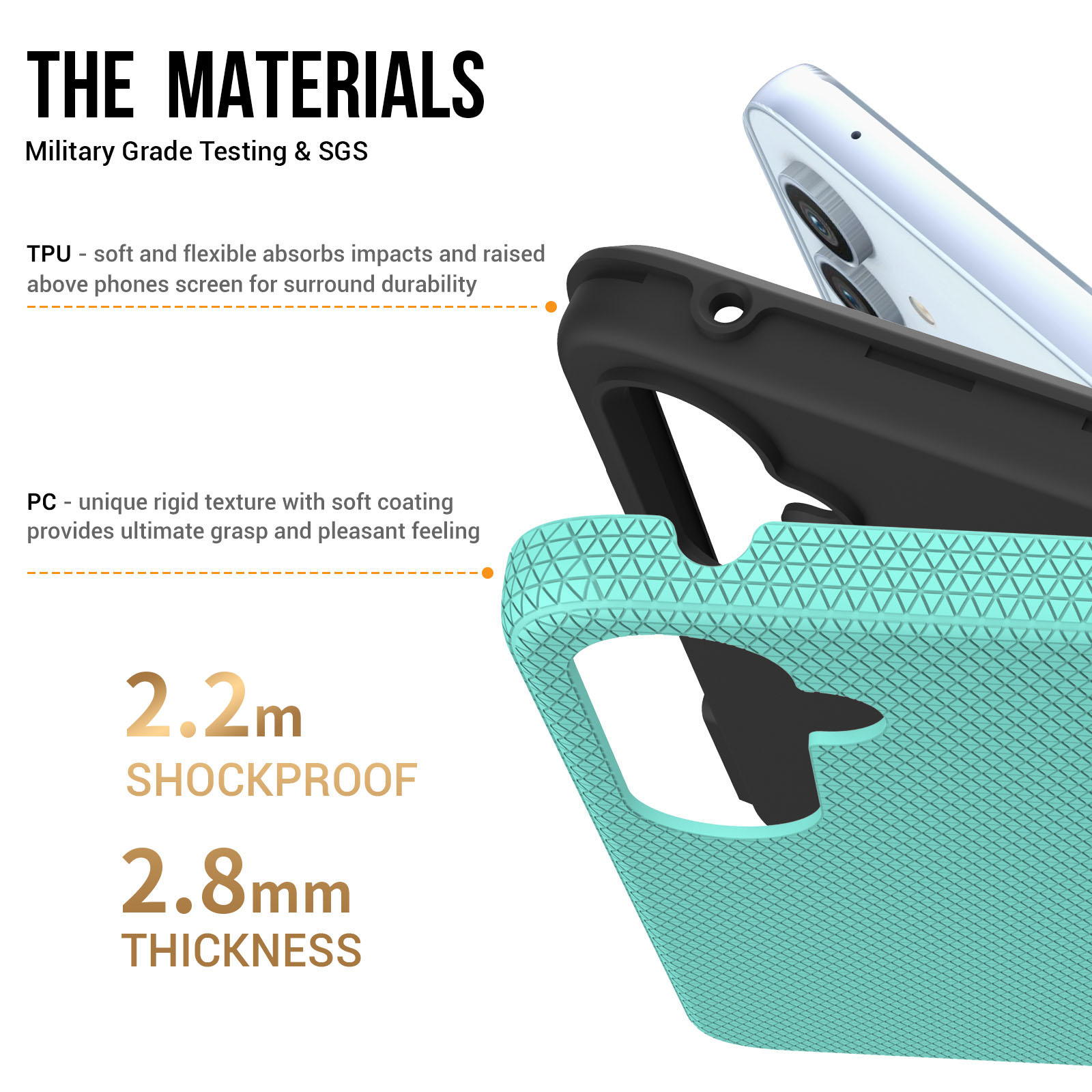The fusion of two qualitative materials – soft TPU and hard plastic High-quality materials, fused to one tough layer, not only provide great protection but also allow the case to keep its transparent good looks for a long time.