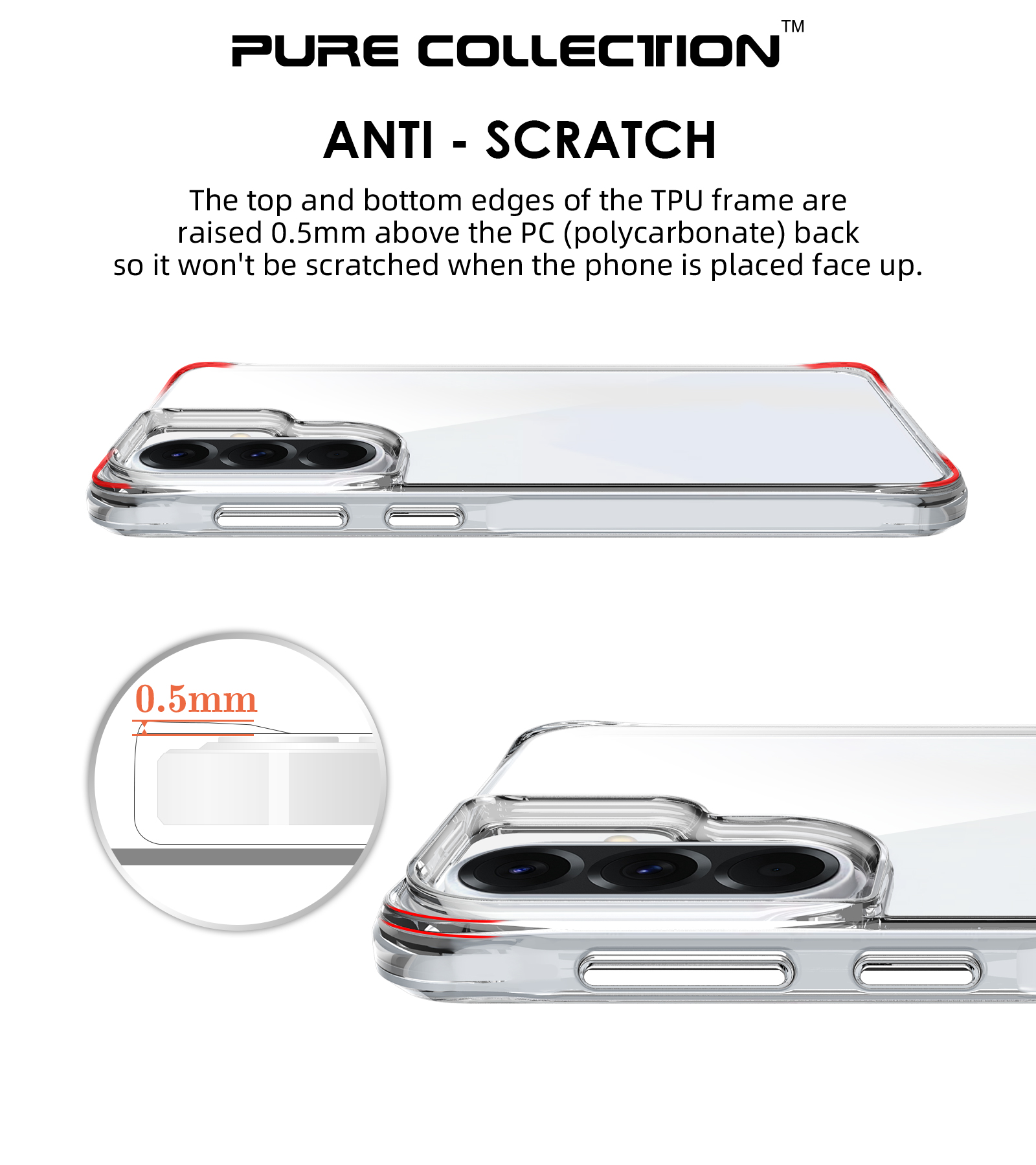 The top and bottom edges of the TPU frame are raised 0.5mm above the PC (polycarbonate) back so it won’t be scratched when the phone is placed face up.