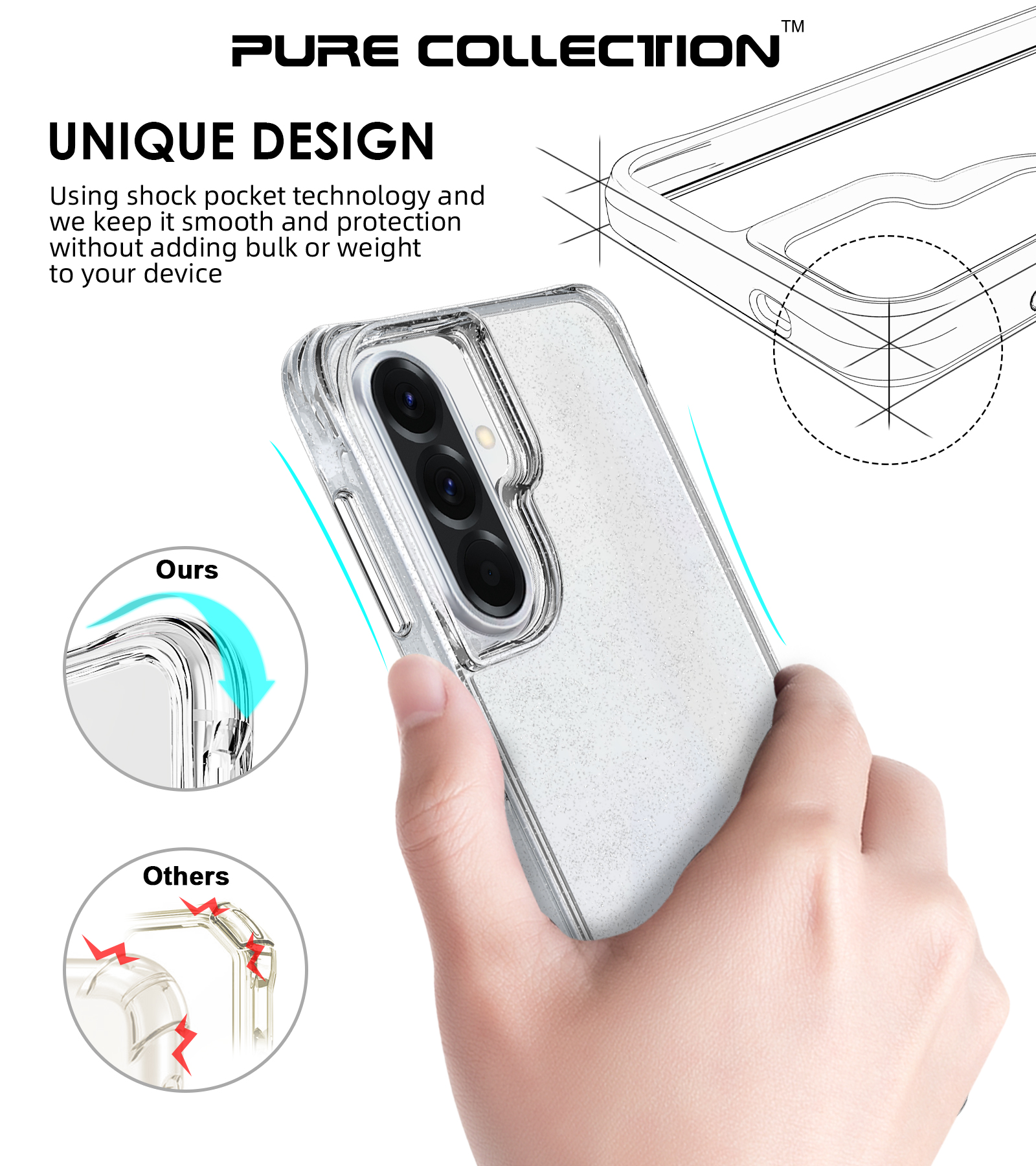 Using shock pocket technology and we keep it smooth and protection without adding bulk or weight to your device
