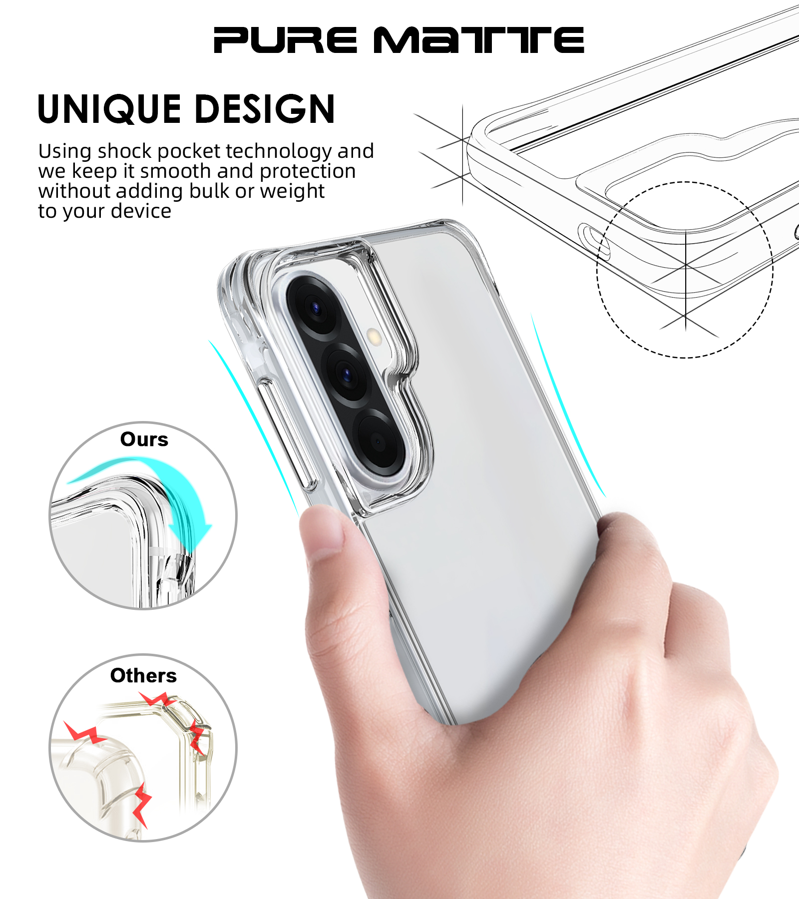 Using shock pocket technology and we keep it smooth and protection without adding bulk or weight to your device